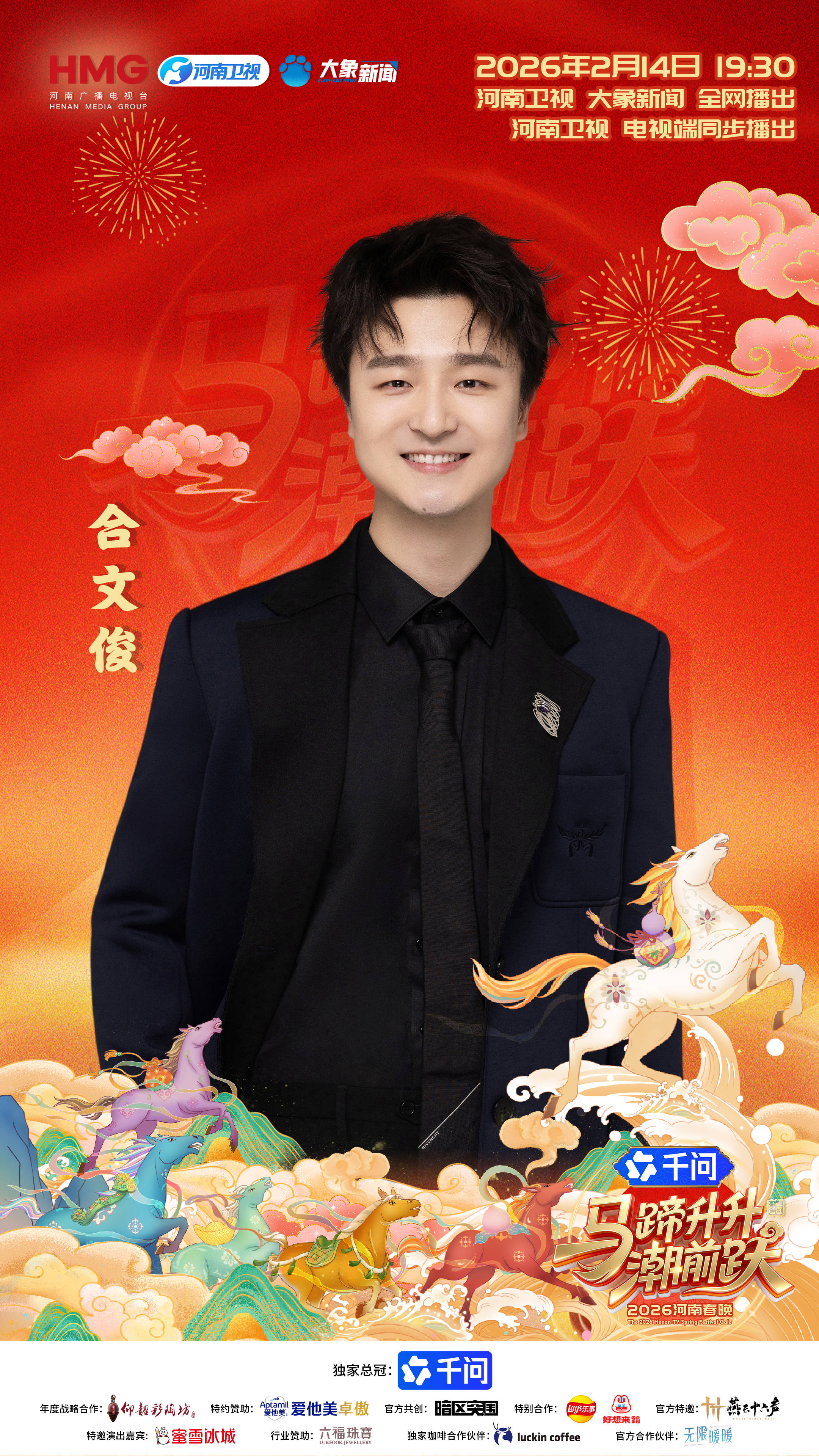 备受期待的《2026河南卫视春节联欢晚会》今日正式官宣完整阵容与节目亮点。晚会定档2月14日(农历腊月廿七)19:30,将通过河南卫视电视端、大象新闻客户端全网同步播出。由“好想你”红枣独家冠名支持,本届春晚以 “马蹄升升潮前跃” 为主题,将生肖“马”的意象升华为奋发向上的时代精神,延续“中国节日”系列“传统基因 现代语态”的创新表达,用文化自信讲好中国新春故事。